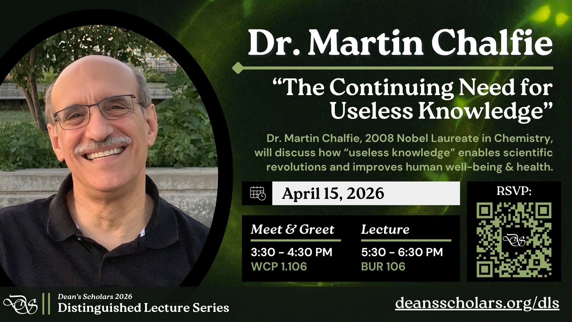 In addition to the lecture, we will host a meet & greet event, open to all undergraduates who’d like to personally meet Dr. Chalfie!